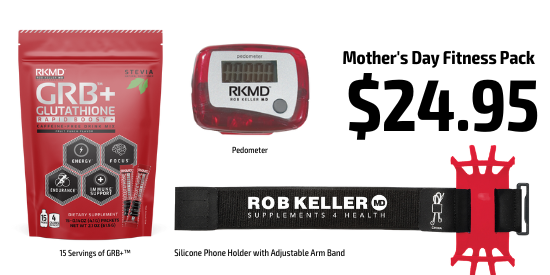 The Mother's Day Fitness Pack, valued at $40, includes 15 servings of GRB™+, plus a pedometer and a silicone phone holder with adjustable armband. Get all three items for just $24.95 when you purchase this pack today!